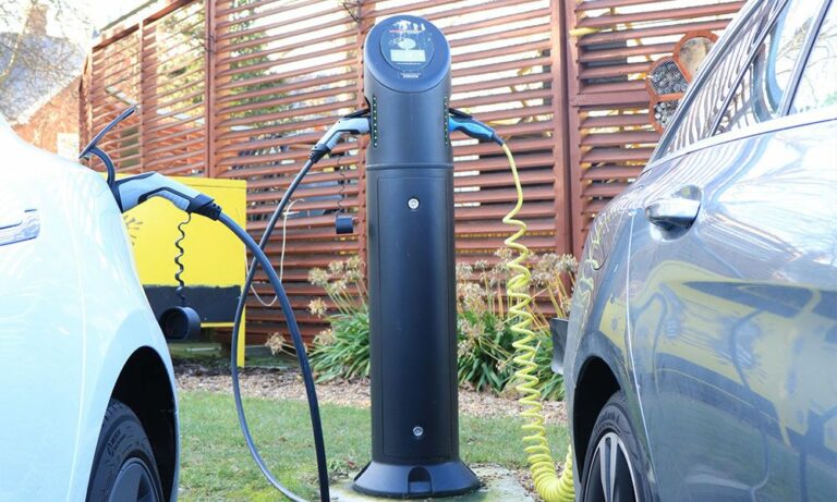 The chargers are a Type 2 Socket 7.2kw. We estimate a charging time of 3-4 hours for a fully electric vehicle.