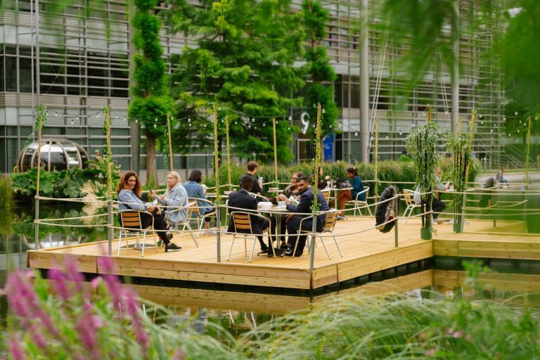 Installed for the summer period, The Deck is a beautiful floating pontoon situated on the top lake at Chiswick Park.